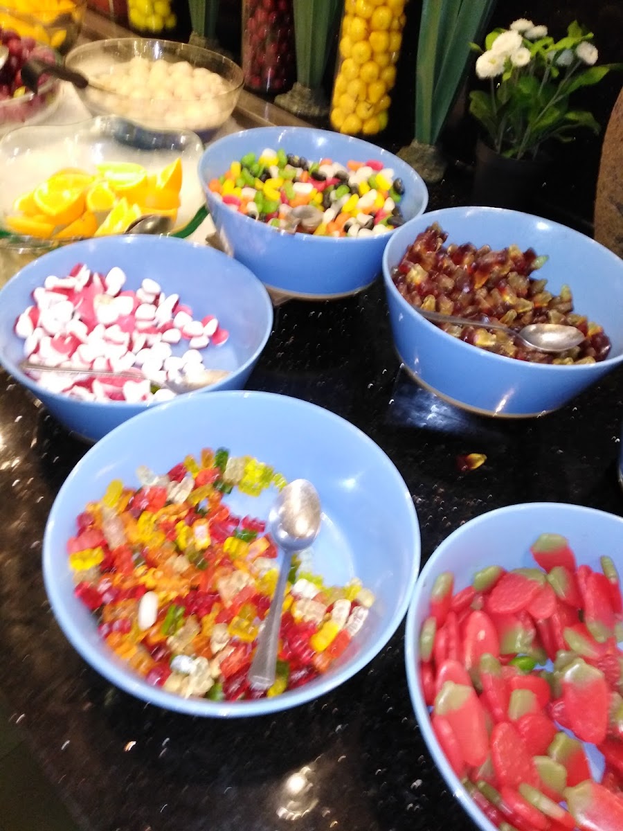 A large variety of foods including teppenyaki - which is by far my favourite - king prawns, squid, chicken, gyoza's, along with udon noodles, pak choi, mushrooms and more! There's a large variety of desserts too, such as cakes, sweets, fruit, ice cream, and more. My only criticism is that some of the staff members weren't too friendly, struggling to crack a smile, no matter how much I thanked them and smiled. They were, however, rather attentive with clearing plates etc.